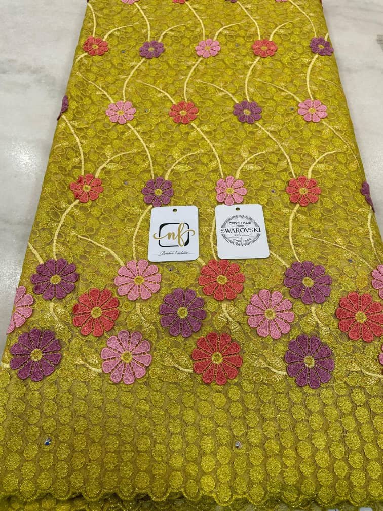 Découvrez notre collection de tissus "Brodé Autriche Chemical", un choix parfait pour les femmes à la recherche d'élégance et de confort. Ces tissus, de qualité supérieure, sont délicatement brodés avec des motifs raffinés, inspirés des traditions autrichiennes, pour offrir une touche unique à chaque création.(5 yards)